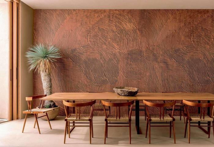 La gamme bois proposée par Élitis illustre parfaitement cette approche. On y retrouve des revêtements qui imitent le bois avec une précision et une finesse remarquables, apportant chaleur et authenticité sans les contraintes d’un vrai bardage. Ces papiers peints s’intègrent aussi bien dans un intérieur contemporain que dans une maison de caractère.